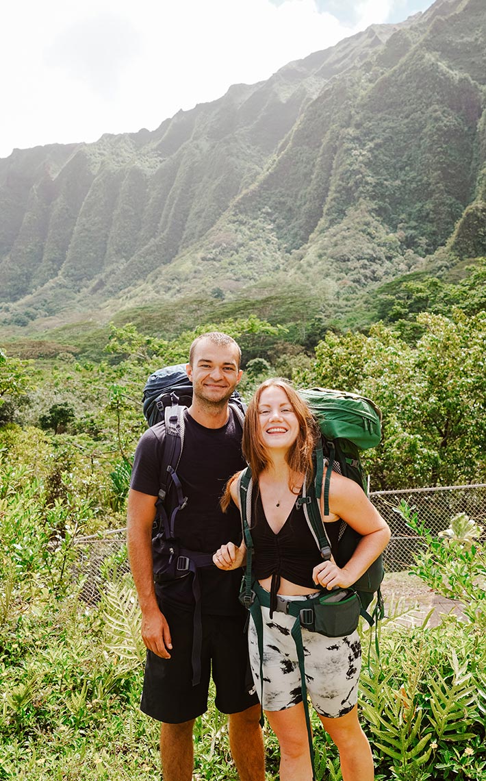 Bei der Planung welche Sachen wir nun benötigen oder eben nicht, konnten wir uns nicht an einer bereits fertigen Weltreiseroute und damit an die Klimabedingungen des jeweiligen Landes orientieren. Unsere Weltreise startete am 18. Mai 2021 inmitten von Covid und den damit erschwerten Einreisebedingungen in viele Länder, somit wussten wir gar nicht, welche Länder wir überhaupt bereisen können. Unsere Rucksäcke mussten also so gepackt werden, dass wir sowohl für tropische Temperaturen als auch für kältere Regionen ausgestattet sind – dabei geht der Zwiebel Look natürlich immer, also einfach alle zur Verfügung stehenden Sachen übereinander anziehen.