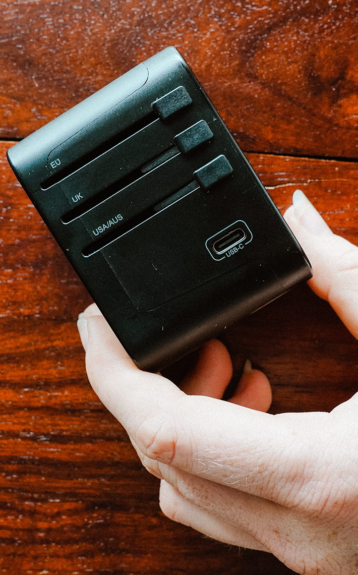 - Reiseadapter* und nimm dir auch direkt eine Kabeltasche* mit